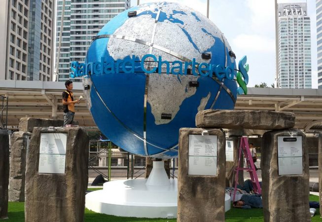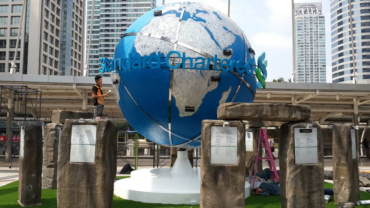 Mock-up ลูกโลกฉลองครบรอบ 120 ปี ธ.สแตนดาร์ดชาร์เตอร์ เส้นผ่าศูนย์กลาง 4ม. ติดตั้งทั้งที่ Mega Bangna และ BTS ช่องนนทรี